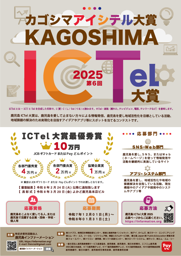 NPO鹿児島インファーメーション主催『鹿児島ICTel大賞2025』(アイシテル大賞)』の作品・アイデアを募集中です!